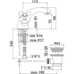 Miscelatore Lavabo Bocca 114 Mm Paffoni Iris IRV075CR Cromo – Iris – Piletta Con Salterello 11/4