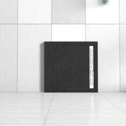 Piatto Doccia In SMC Vetroresina Effetto Pietra H 2,6 Cm Con Piletta Di Scarico Inclusa 80-160 Nero