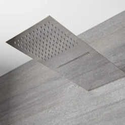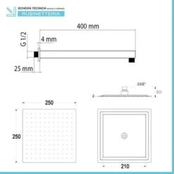 Set Doccia Quadrato Cromo Con Braccio 40 Cm + Soffione In Acciaio 25×25 Cm