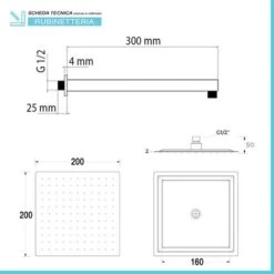 Set Doccia Quadrato Cromo Braccio 30 Cm + Soffione 20×20 Cm Acciaio