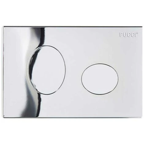 Placca Pucci Eco Ellisse a doppio comando in materiale sintetico cromo per cassette di risciacquo da incasso.