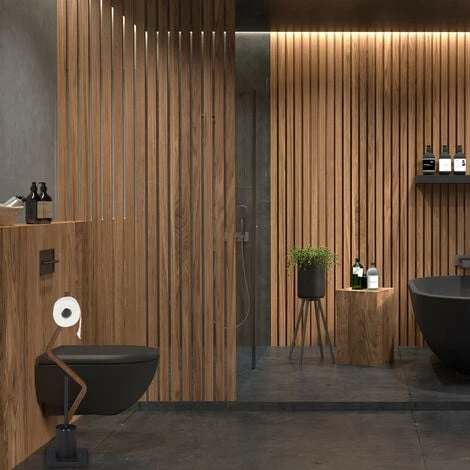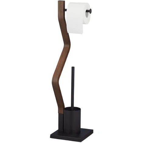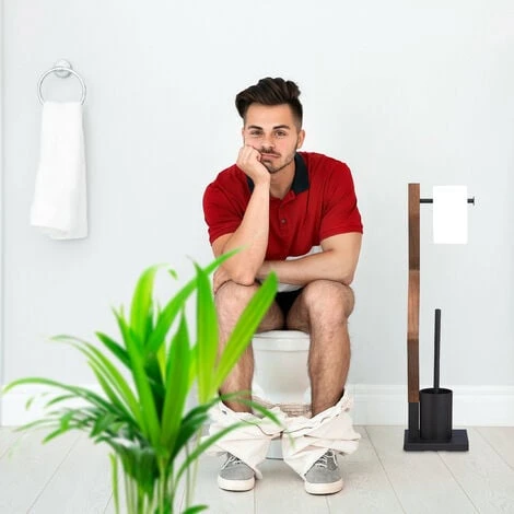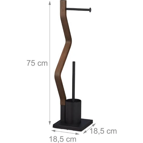 Grazie a questa elegante piantana da bagno, avrai portarotolo e portascopino sempre a portata di mano. Il set di accessori per WC da terra può essere posizionato ovunque desideri in bagno e non necessita di montaggio alla parete. Il design moderno della piantana portarotolo è caratterizzato dalla combinazione elegate di acciaio con il legno scuro. Lo scopino con testa intercambiabile e il contenitore dello scopino rimovibile assicurano un’igiene ottimale degli accessori.