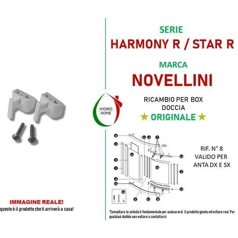 Ricambio Box Doccia Novellini originale, coppia ganci per box STAR R semicircolare versione 2 binari adatto per anta Destra ed anta Sinistra