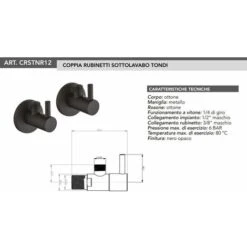 Coppia Di Rubinetti Sottolavabo Connessioni 1/2x 3/8G Piralla Rubinetterie CRSTNR12 Nero Opaco