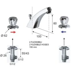 Miscelatore Per Lavabo Paffoni Viola VLV077CR Cromo – Viola – Piletta Con Salterello 11/4
