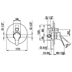 Miscelatore Doccia Incasso Con Deviatore A 2 Vie Piralla Essenza 0ES00400A16 Cromo – 2 Uscite