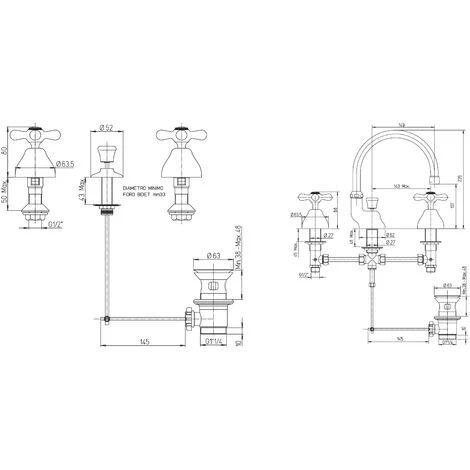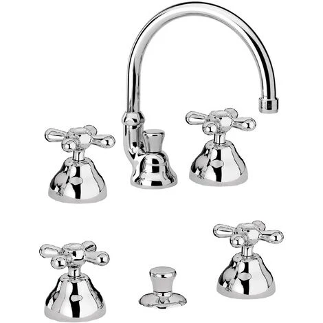 Rubinetto 3 fori bidet + lavabo batteria con manopole a croce classico miscelatore retrò vittoriano PAINI SET BAGNO completo liberty