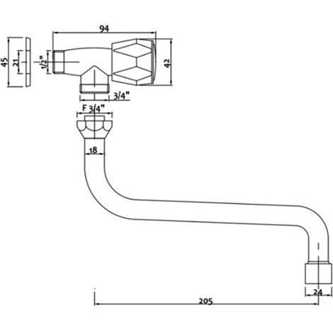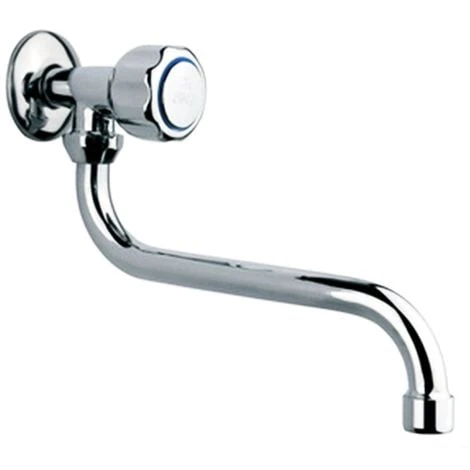 Rubinetto singolo a muro in ottone cromato con attacco 1/2″ e canna lunga a “S” da 20 cm