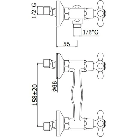Rubinetto installazione a parete per doccia in colore cromo completo di duplex in ottone e resina |Paffoni Rubinetteria IRIS IRV168DCR
