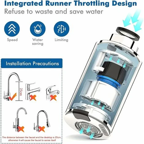 Design a risparmio idrico: adottando il design dell’acceleratore di flusso integrato, può rispondere rapidamente all’acqua dall’interruttore, risparmiare tempo sul consumo di acqua e limitare meglio il flusso d’acqua allo stesso tempo, garantendo un flusso a una pressione dell’acqua di 0,1 MPa 0,07 l/s, che consente di risparmiare acqua.