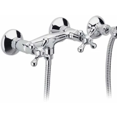 Miscelatore per vasca o doccia esterno, presenta uno stile vintage ed è per questo motivo indicato agli ambienti bagno dall’estetica non moderna. L’apertura, la chiusura e la miscelazione dell’acqua avvengono tramite la rotazione delle due manopole che riprendeono sempre l’estetica rètro del prodotto. Il doccino monogetto, di cui è fornito, ha una misura standard ed è correlato del proprio supporto a muro regolabile. L’interasse del prodotto è di 150cm e può essere regolato a piacere di un massimo di 2cm in eccesso o difetto. Raccomandiamo, per garantire alla finitura cromata una buona durata e lucentezza, di effettuare pulizie accurate senza l’utiizzo di prodotti aggressivi.Tipologia : Con manopole