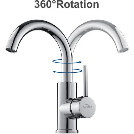 Auralum Rubinetto Lavabo Miscelatore Ottone Cromato, Girevole a 360°,Per Lavello Cucina o Lavandino Bagno