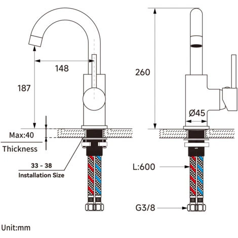 FACILE INSTALLAZIONE: Questo rubinetto del bagno è facile da installare con le istruzioni di installazione e gli accessori forniti.