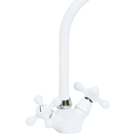 Rubinetto stile vintage con manopole per l’apertura dell’acqua fredda e calda, realizzato in ottone con finitura color bianco. Include due flessibili inox standard e un pratico kit per installarlo in modo rapido e semplificato. La serie Country è perfetta per coloro che sono alla ricerca di un prodotto dallo stile inconfondibile del passato, infatto le linee ed il design sono estrememente rustici e retrò. I dettagli cromati lo rendono ancora più raffinato e particolare. L’altezza e ma larghezza misurano rispettivamente 283 e 192 mm e il diametro della base del corpo misura 49 mm. Idrobric è garanzia di qualità e affidabilità pur mantenendo un prezzo contenuto.Tipologia : Con manopole