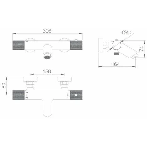 Le dimensioni del rubinetto sono 306 mm di larghezza x 164 mm di lunghezza/profondità.