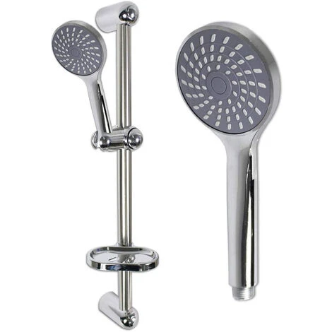 Saliscendi cromato con soffione multigetto. Semplice da montare e da pulire, la linea moderna ed essenziale lo rende adatto a qualsiasi stile di bagno. Fornito con tubo flessibile per il soffione, un comodo portasapone scorrevole e viti per il fissaggio.