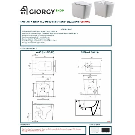 - attacchi bidet terra : scarico H.18.5 , ingresso H.35.5
