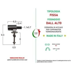 Cerniere Fisse Soft Close Fissaggio Dall Alto Per Copriwc Termoindurente Con Tassello Rettangolare