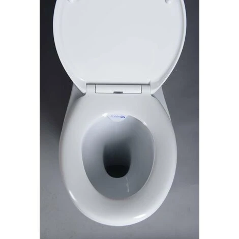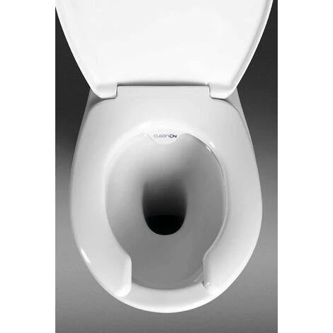 Scarico con tecnologia Clean On – una superficie in ceramica liscia senza cavità e pieghe. L’acqua di risciacquo scorre attraverso il distributore d’acqua solo dalla parte posteriore del WC e, grazie alla speciale forma della ceramica, risciacqua perfettamente l’interno.