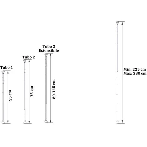 - Dimensioni tubo 3: 80-145 cm (estensibile)