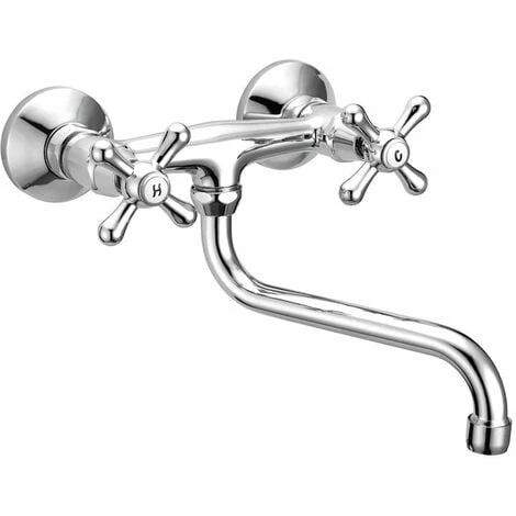Gruppo lavello a parete per lavello cucina con bocca girevole 360°, ideale per box e lavanderia | Serie Antica| colore Cromo