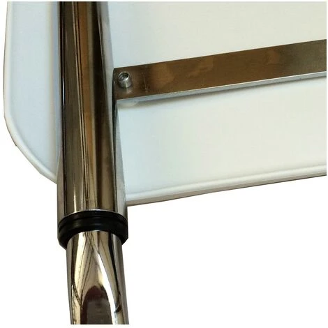 La Larghezza della struttura è regolabile fino a 10 posizioni, da un minimo di 66 cm ad un massimo di 75 cm. La portata è di 120 kg. Comodo lo schienale sempre in Polipropilene.