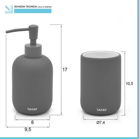 - Composto da dosasapone e bicchiere porta spazzolini;