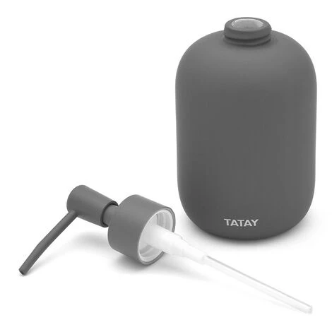 Questo set di 2 accessori d’appoggio è composto da un dosasapone ed un bicchiere porta spazzolini entrambi realizzati in ceramica con finitura grigio scuro ad effetto soft touch. Il dispenser sapone liquido è completo di erogatore in abs, removibile per facilitare il rabocco del liquido.