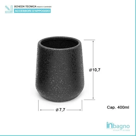 - Dimensioni portaspazzolino: L 9 x P 9 x H 11 cm