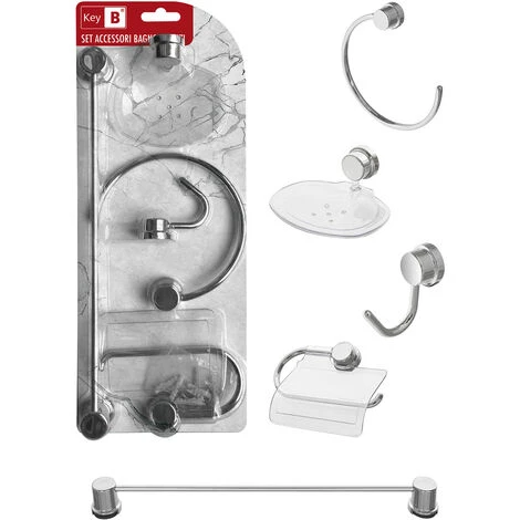 Set accessori bagno Key B Set accessori bagno 5 pezzi in ABS cromo con fissaggio a tassello (inclusi)