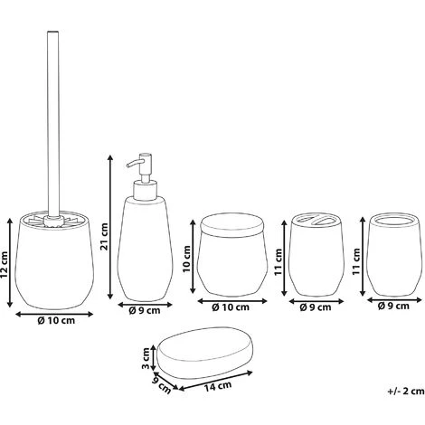 L`offerta include: 1 x Contenitore, 1 x Portasapone, 1 x Spazzola WC, 1 x Porta spazzolino da denti, 1 x Piattino per sapone, 1 x Bicchiere