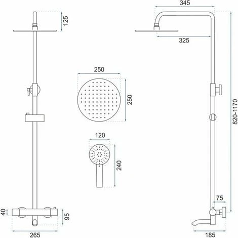 - Dimensioni soffione doccia: 25 x 25 cm