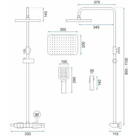 - Dimensioni soffione doccia: 25 x 25 cm