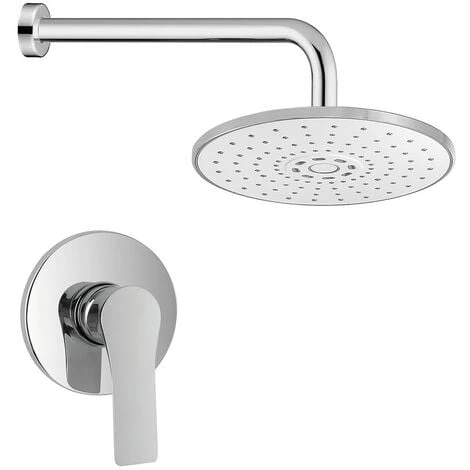 Set doccia tondo Flat completo di miscelatore a incasso 1 via, braccio doccia da 40 cm e soffione con getto a pioggia da 22 cm