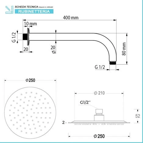 Set doccia incasso completo – con soffione tondo 25 cm, kit doccia e miscelatore serie Serena