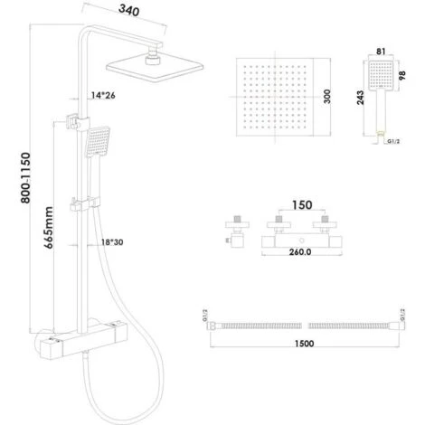 Colonna doccia con rubinetto termostatico e soffione a pioggia – 30 cm