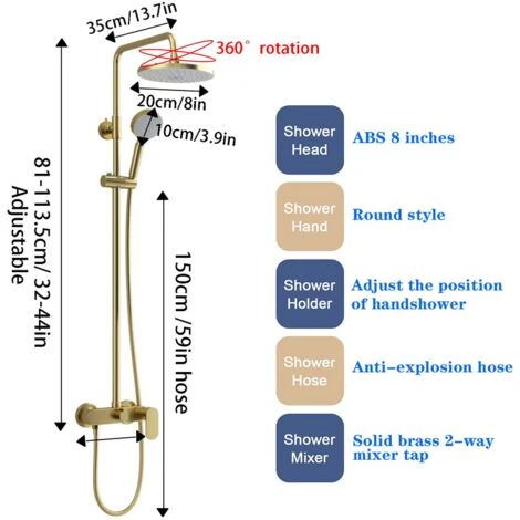 Set Rubinetto Doccia Oro Spazzolato, Soffione Doccia A Pioggia In ABS Da 8 Pollici Con Doccetta, Rubinetto Doccia A Pioggia Di Lusso, Miscelatore Bagno, Sistema Doccia