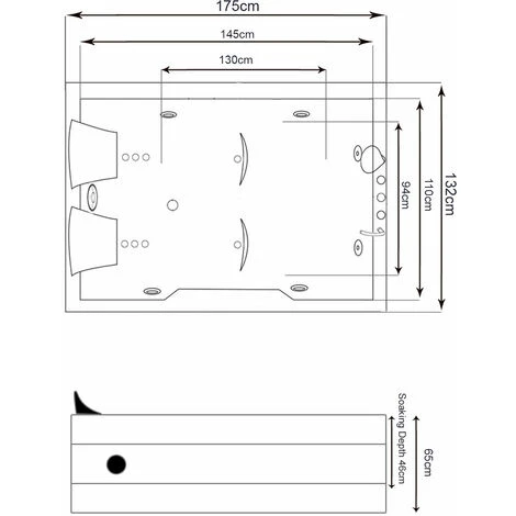 Dimensioni della vasca: base 175 x 132 cm