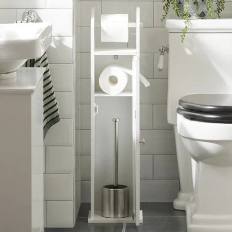 SoBuy Mobile salvaspazio da bagno con Portascopino e portarotolo
