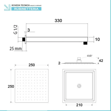 - Dimensione soffione: 25×25 cm – H 4 cm;