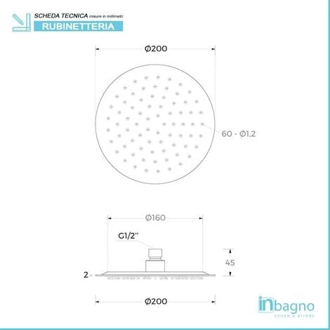- Spessore soffione: 2 mm