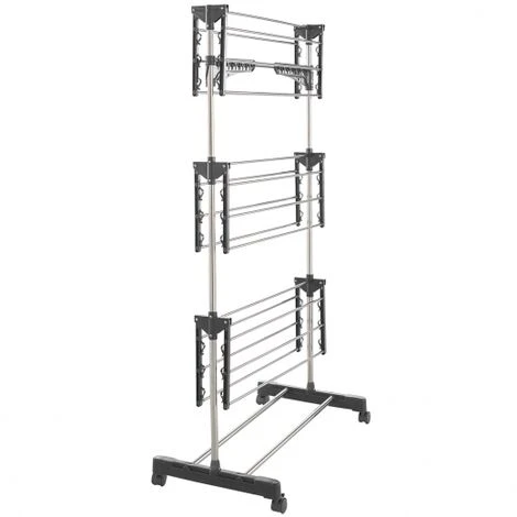 Lo stendibiancheria MAXIMA diventerà rapidamente il vostro migliore alleato quando si tratta di asciugare il bucato. Con i suoi 3 livelli indipendenti, ha una grande capacità di appendimento (fino a 25 metri, con le grucce). L’altezza di 145 cm consente di asciugare facilmente la biancheria più voluminosa (lenzuola, accappatoi, teli da bagno, ecc.).L’asciugatrice MAXIMA è dotata di molte funzioni ingegnose per facilitare il vostro lavoro! Le due grucce sono perfette per appendere le camicie senza stropicciarle. Le 36 clip appositamente studiate per appendere la lingerie diventeranno presto indispensabili! La doppia barra di supporto può essere utilizzata anche per asciugare le scarpe!Il suo vantaggio? I 30 accessori pratici e intelligenti: 10 appendini coordinati e 20 mollette in acciaio con speciali cuscinetti protettivi per i capi delicati.Manipolate e spostate facilmente l’asciugatrice grazie alle 4 pratiche ruote piroettanti.Oltre alla grande capacità di stendere i vostri capi, l’asciugatrice MAXIMA è particolarmente discreta! Grazie al suo formato pieghevole, l’asciugatrice può essere infilata in poco tempo in spazi ridotti come un armadio o dietro una porta.I montanti in plastica e le barre in acciaio inox rendono MAXIMA un’asciugatrice robusta e pratica.Asciugate tutto il vostro bucato con questo pratico stendino ad un prezzo mini!Dimensioni dell’asciugabiancheria MAXIMA grigio- Dimensioni da aperto: lunghezza 81 CM x larghezza 57 CM x altezza 145 CM- Dimensioni piegate: lunghezza 81 x larghezza 42,5 x altezza 145 CM- Materiali: acciaio inox + plastica ABS- Colore: grigio- Da assemblare da soliAccessori :- 2 appendiabiti pieghevoli- 36 mollette per la biancheria- 10 grucce- 20 mollette in acciaio con guide- Doppia barra di supporto- 4 ruote piroettantiTrovate tutti i nostri modelli di asciugatrici e appendiabiti nel nostro negozio online!