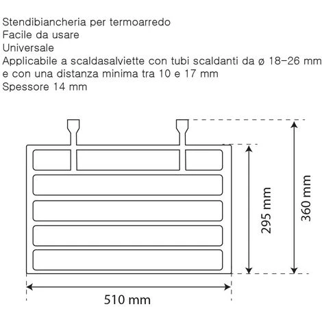- Applicabile a scaldasalviette con tubi scaldanti da ø 18-26 mm e con una distanza minima tra 10 e 17 mm