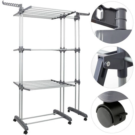 2. Design del gancio per abiti, comodo per appendere i vestiti (il design del gancio per abiti a sette fori, sia a sinistra che a destra può essere asciugato e l’altezza di 170 cm è conveniente per asciugare i vestiti).