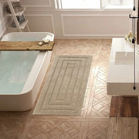 - Tappeto elegante in filato di puro cotone morbidissimo e assorbente, tecnica di tessitura Wilton jacquard