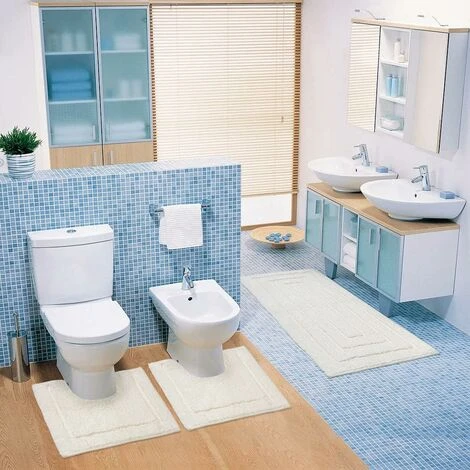 - 6 Misure disponibili ( spessore 9mm ) : 65×40 / 55×80 / 55X110 / 65×140 / 65×180 / Parure set 3 pezzi composta da: 1 tappeto 55×110 cm e 2 girowater 55×40 cm