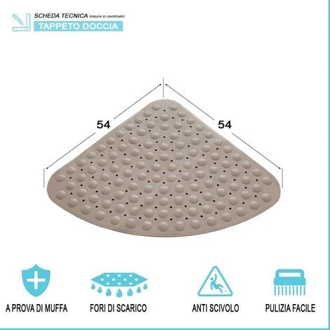 Tappeto Antiscivolo in PVC Angolare in Pvc Tortora per box doccia angolari