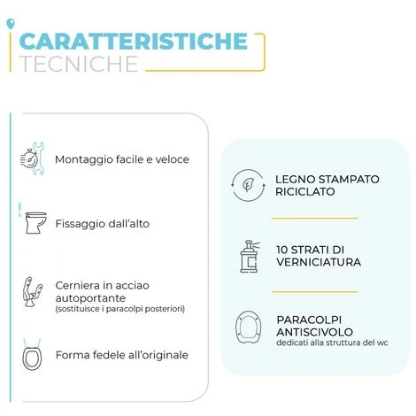- COMPLETO di coperchio, ciambella e set di cerniere in acciaio cromo