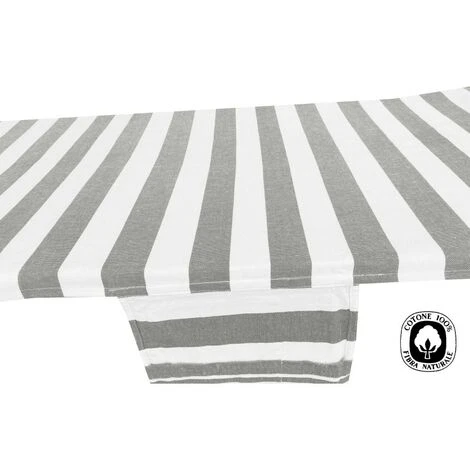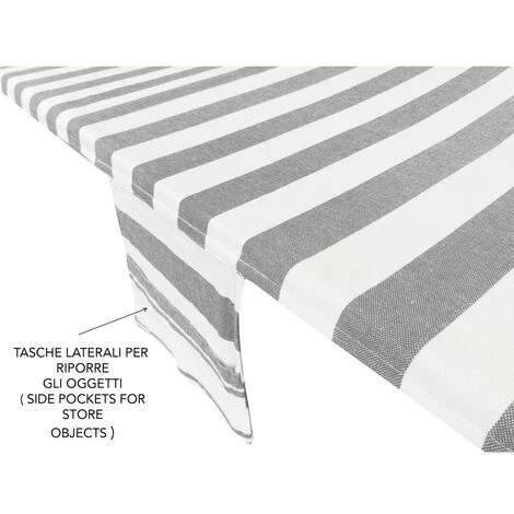 Questo telo mare con angoli da lettino rigato sul beige in morbido cotone è l’ideale per chi intende crogiolarsi al sole.
