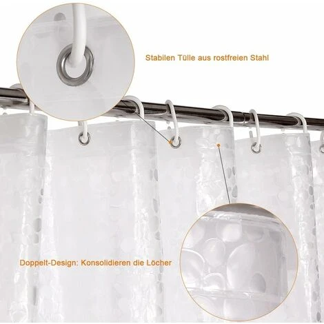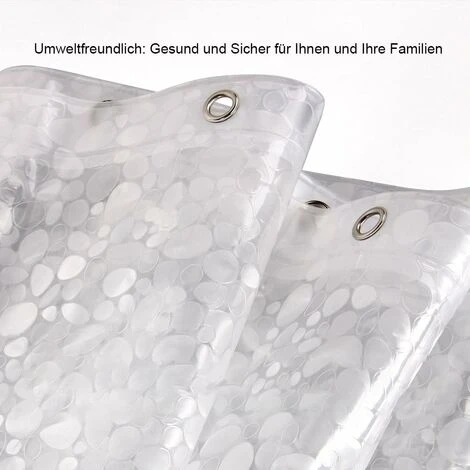 - DESIGN: questa tenda da doccia è dotata di 12 occhielli in metallo resistente alla ruggine e anelli di plastica abbinati per una facile piegatura. Design moderno 3D con motivo a ciottoli traslucidi per la tua privacy. Questa sarebbe un’ottima scelta per una casa o un hotel.